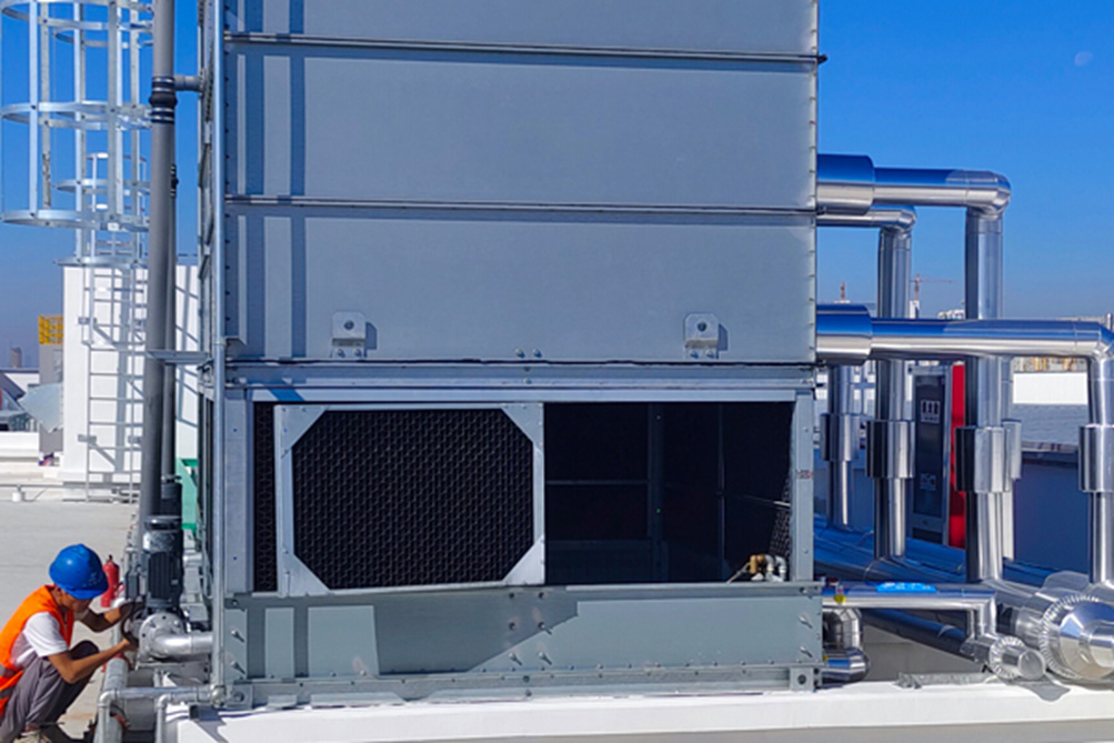 對(duì)于暫時(shí)不使用的設(shè)備,可將冷卻水塔或冰水機(jī)冷凝器的進(jìn)出口閥門關(guān)閉,放水閥門打開(kāi),將水排空即可。
